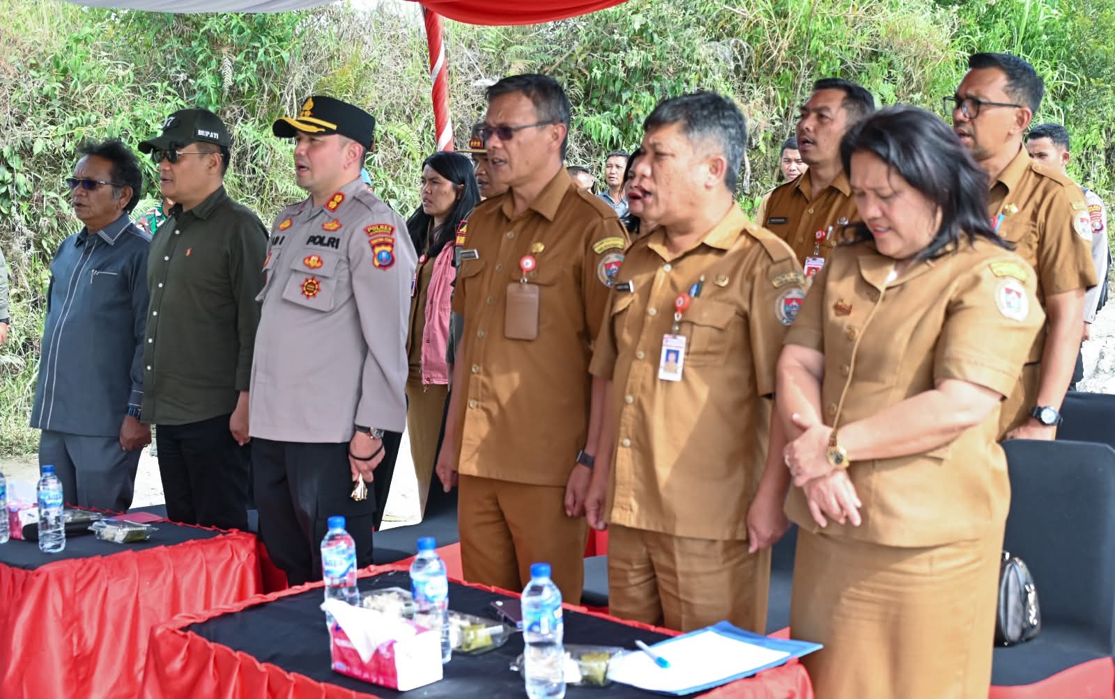 Bupati Humbang Hasundutan (Humbahas) Dr Oloan Paniaran Nababan SH MH bersama Kapolres Humbahas AKBP Adi Nugroho SH SIK, Anggota DPRD Humbahas Lam Marganda Silaban dan lainnya melakukan peletakan batu pertama pembangunan KDMP Siponjot di Desa Siponjot Kecamatan Lintongnihuta, Selasa 20 Januari 2026.