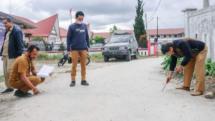 Inspektorat kabupaten Humbang Hasundutan lakukan Pengecekan Pekerjaan lapen di Jalan Pancasila kec.Lintongnihuta