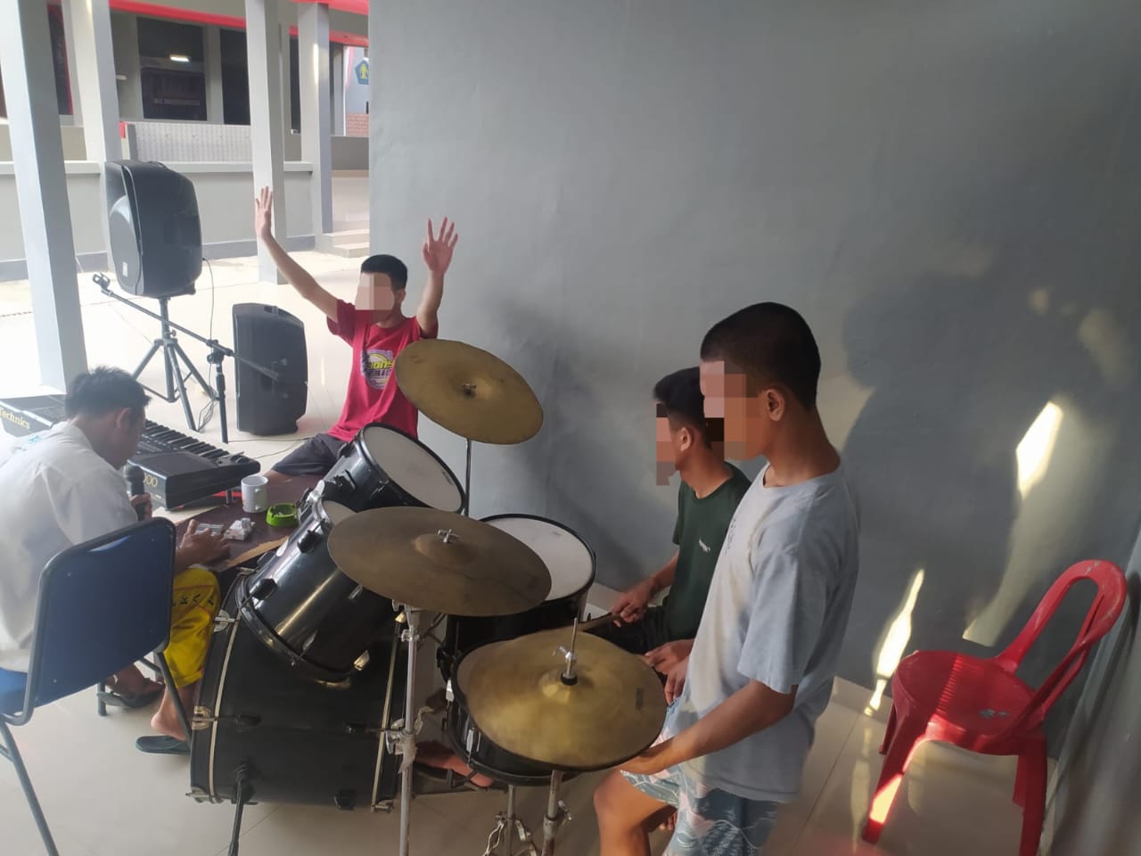“Kegiatan ini selain memberi sarana rekrasional untuk anak, juga bisa membantu mengasah kemampuan mereka sehingga potensi yang masih terkubur di dalam diri mereka bisa mudah untuk di dapatkan,” ujarnya sembari memainkan drum